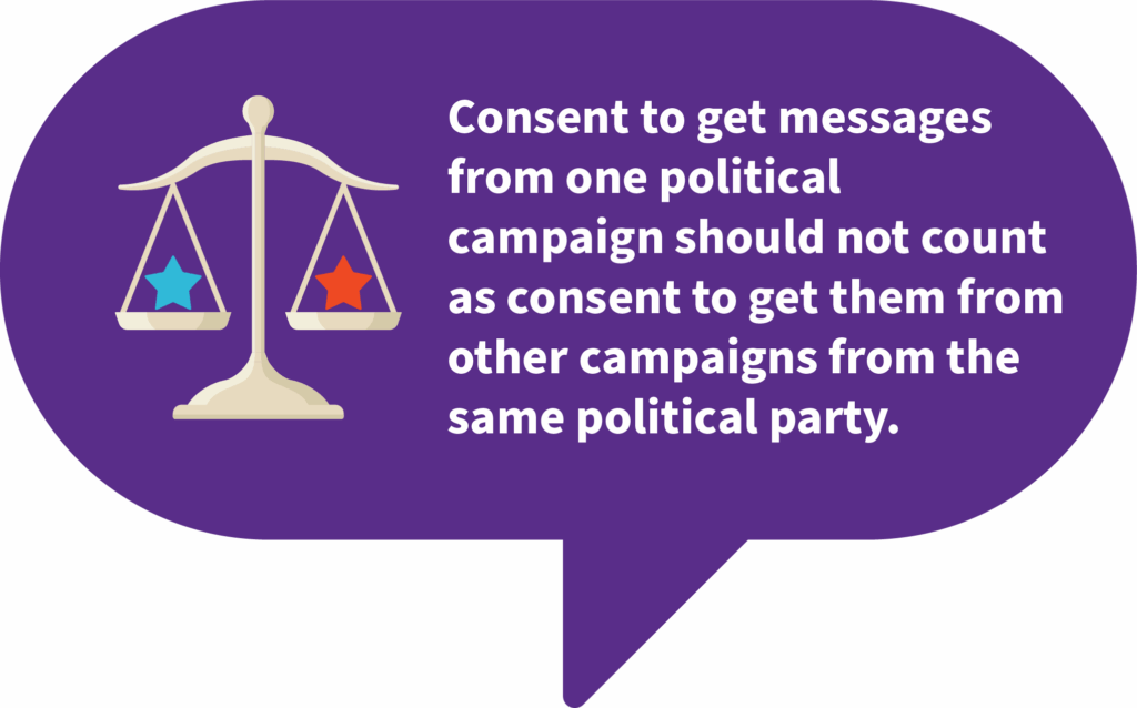 Political message senders are expected to obtain consent before sending consumers any messages, and as part of that process they should be informing consumers about the types of texts they can expect to receive. Doing so will help ensure political messaging campaigns engage those supporters and voters who have an expectation of exchanging text messages with the campaign. This can lead to better engagement with voters and increase fundraising opportunities.